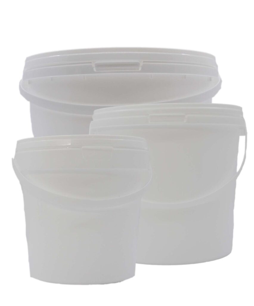 Round White Plastic Buckets (Pails) x 5 – In various sizes